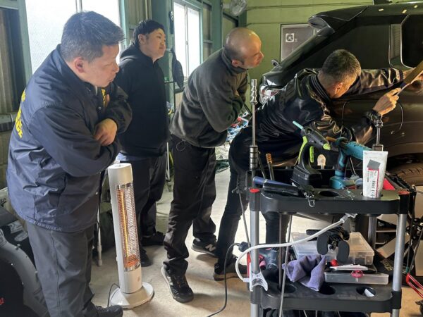 仕事現場へ潜入 放課後、先輩の仕事現場へ潜入〜 所用があり、近くで作業していた卒業生の現場へやってまいりました。せっかくなので受講生のみんなを連れて見学させて頂く事になりました♪ 現場で活躍する卒業生が、普段の仕事の流れや技術を惜しみなく披露し解説して下さいました。 教室で学ぶ技術が、実際の現場でどう使われているのか。 それを間近で見ることができる、受講生の皆さんにとってとても貴重な時間になりました。 作業中対応くださいましてありがとうございました