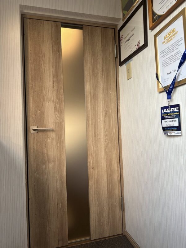 技術に集中できる環境づくり 2階待合室へとつながる扉を新しくしました。 少しずつですが、 より過ごしやすい空間へと整えていっています。 学ぶ時間だけでなく、 その前後の時間も心地よく過ごせるように、環境を整えながらより良い学びの場をつくっています。 技術に集中できる環境づくりも、 私たちの大切な仕事です。